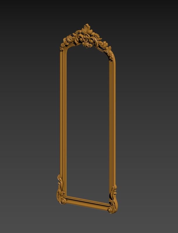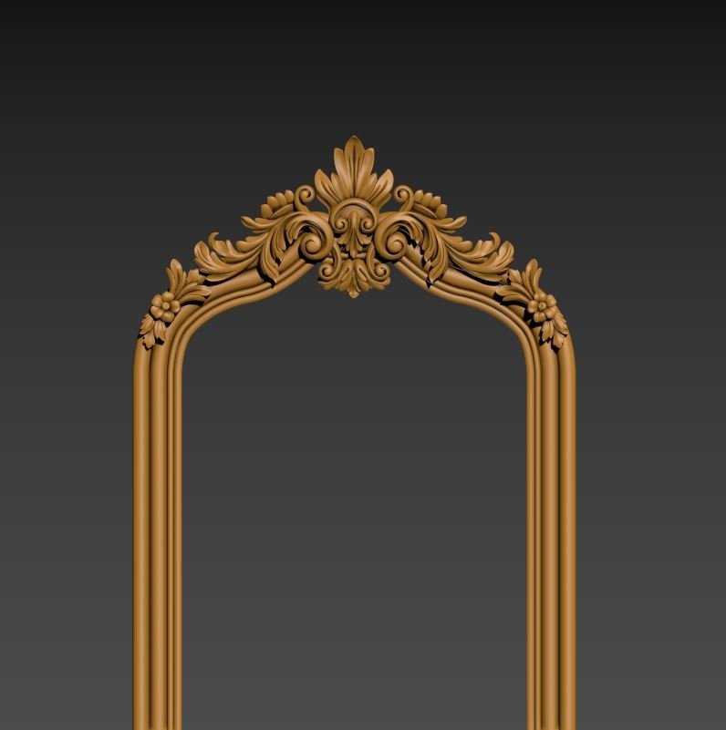 Regal Arched Full-Length Mirror Frame 3D STL model for precision CNC carving. Features a grand ornamental crest with floral motifs and elegant fluted side columns. Ideal for floor-standing luxury mirrors, dressing room decor, and grand entryways. High-resolution relief file compatible with ArtCAM, Aspire, and 3D CNC software.